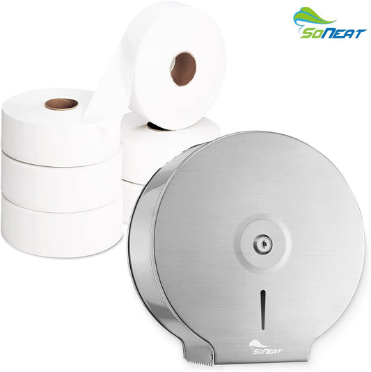 SoNeat Jumbo Roll Toilet Paper Dispenser - Heavy Duty 304-Grade Stainless Steel Toilet Paper Holder Wallmount for Commercial & Public Restrooms, Space-Saving Bathroom Accessories with Lock Key