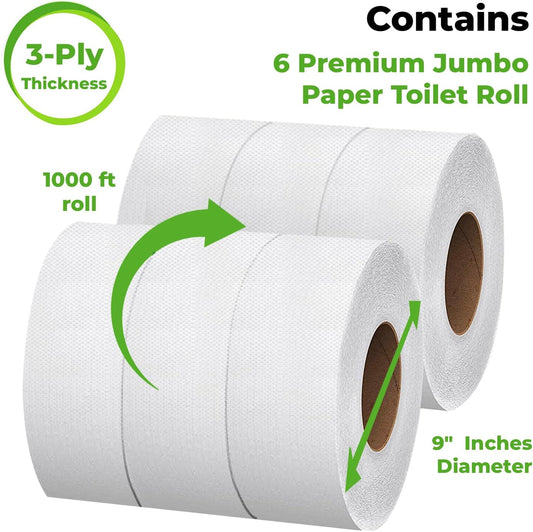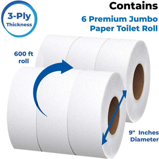 SoNeat 3-Ply Jumbo Toilet Paper Rolls, 9” Commercial Bathroom Tissue Paper, 600 Ft. Long, Compatible with Standard Jumbo Toilet Dispenser, Commercial Toilet Paper Rolls, 9-inch Jumbo Roll Toilet Paper