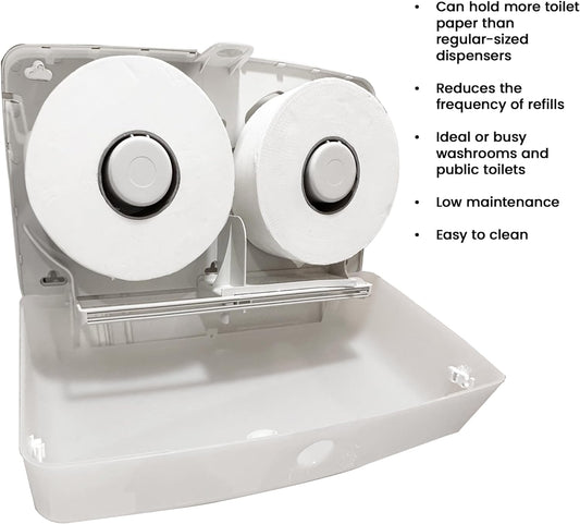 SoNeat Jumbo Roll Toilet Paper Holder - Twin Plastic Toilet Paper Storage, Space-Saving & Wall Mounted Tissue Dispenser for Commercial & Public Restrooms, Holds 2 Jumbo Roll Toilet Paper, White