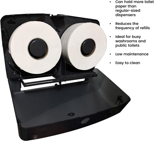 SoNeat Jumbo Roll Toilet Paper Holder - Twin Plastic Toilet Paper Storage, Space-Saving & Wall Mounted Tissue Dispenser for Commercial & Public Restrooms, Holds 2 Jumbo Roll Toilet Paper, Black