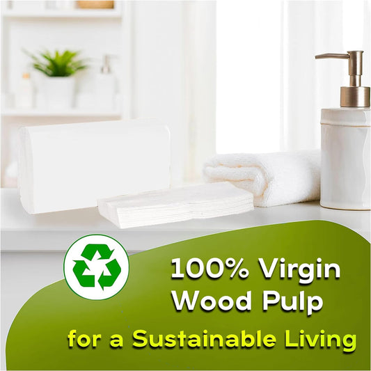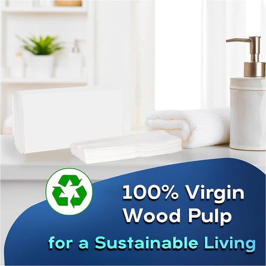 Multifold Paper Towels, 2400 Sheets, Pack of 12 Premium Quality Disposable Hand Towels for Commercial, Household, and Public Bathroom, 100% Virgin Wood Pulp