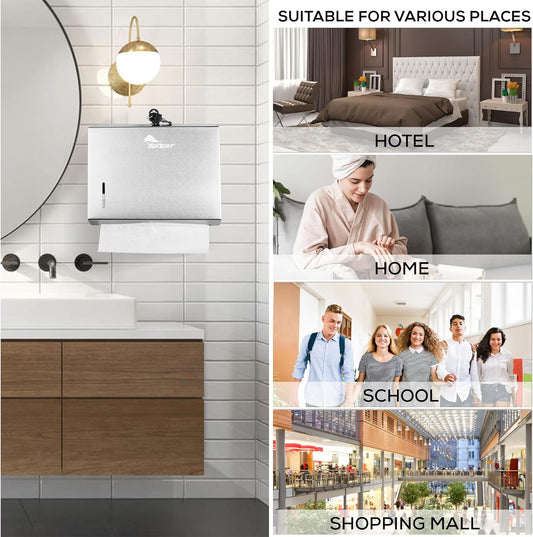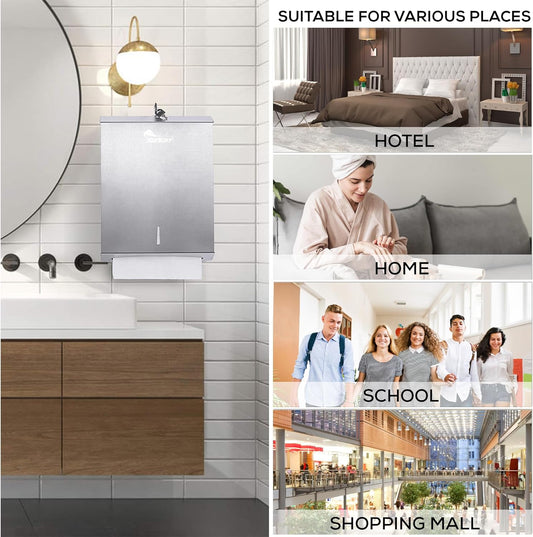 Paper Towel Dispenser, Holds 250 Sheets of Multifold, C-Fold, Trifold Paper Towels, Wall Mount Stainless Steel Hand Towel Dispensers for Home, Kitchen and Commercial Bathroom, 1 Pack