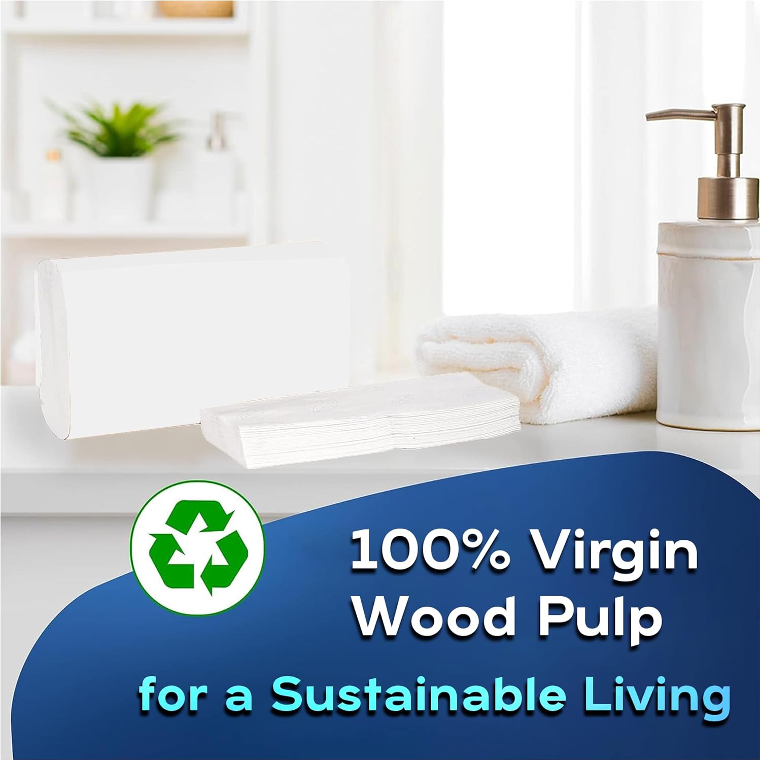 - PREMIUM QUALITY - Crafted from 100% virgin wood pulp, our tri fold paper towels ensures superior quality and strength. Enjoy luxurious multifold paper towels that are kind on the skin but tough on messes.